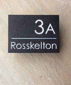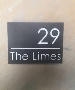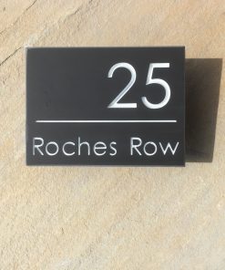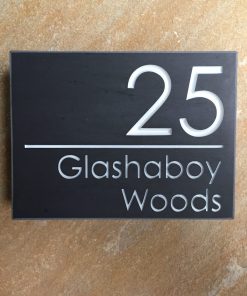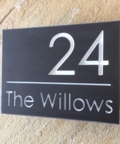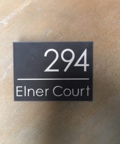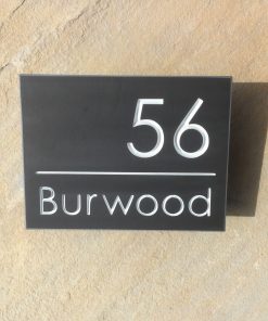 A beautiful and simple house number and address sign. Hidden fixings allow for maximum design and large engraved number.